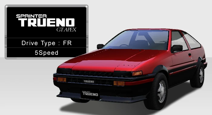 The Toyota Sprinter Trueno GT-APEX, also known as the "Hachiroku" or AE86 to many, is a sports compact car produced by the Toyota Motor Corporation from 1983 to 1987. The car made its debut in Wangan Midnight Maximum Tune 4 via a major update.