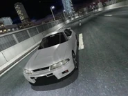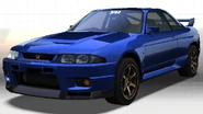 The car is a Nissan Skyline GT-R V-Spec, chassis code BNR33. It is painted in LM Limited Blue (However, in the Playstation games, it is painted in Millennium Jade. And in Maximum Tune 3 - 3DX+, it is painted in Crystal White).
